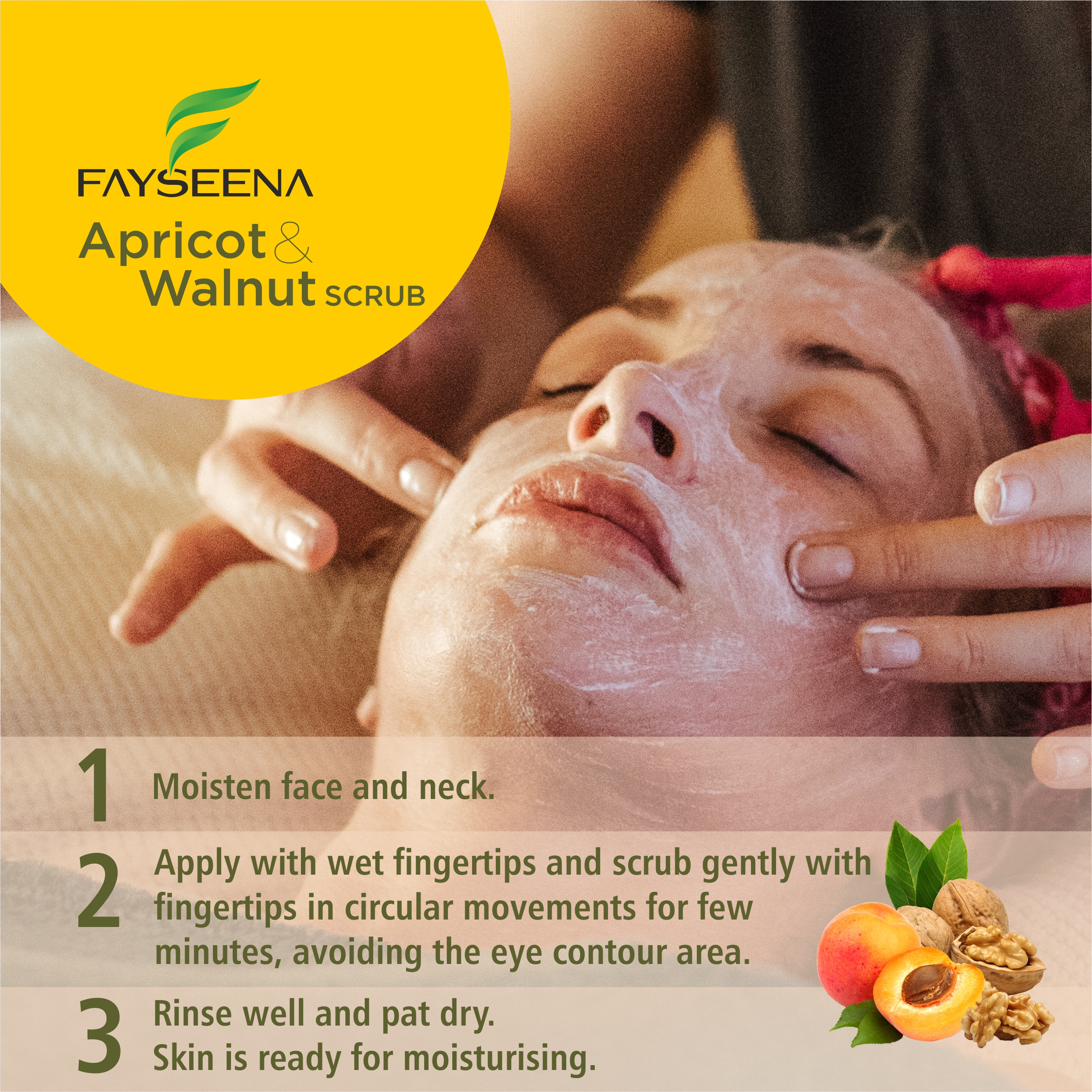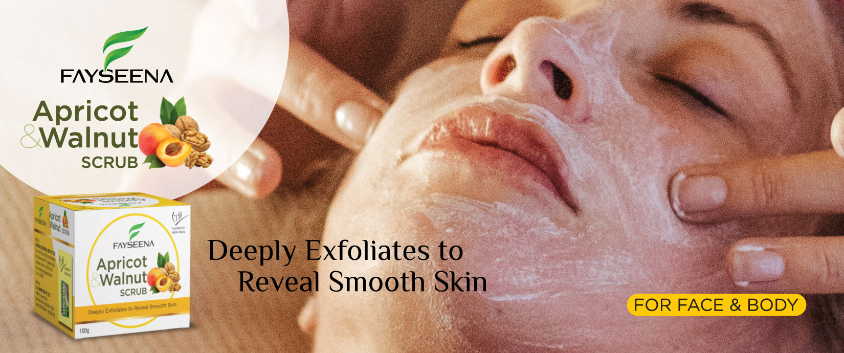 Glow naturally with every scrub! Fayseena’s Apricot & Walnut Scrub gently exfoliates dead skin, unclogs pores, and leaves your face smooth, fresh, and radiant—the herbal way.